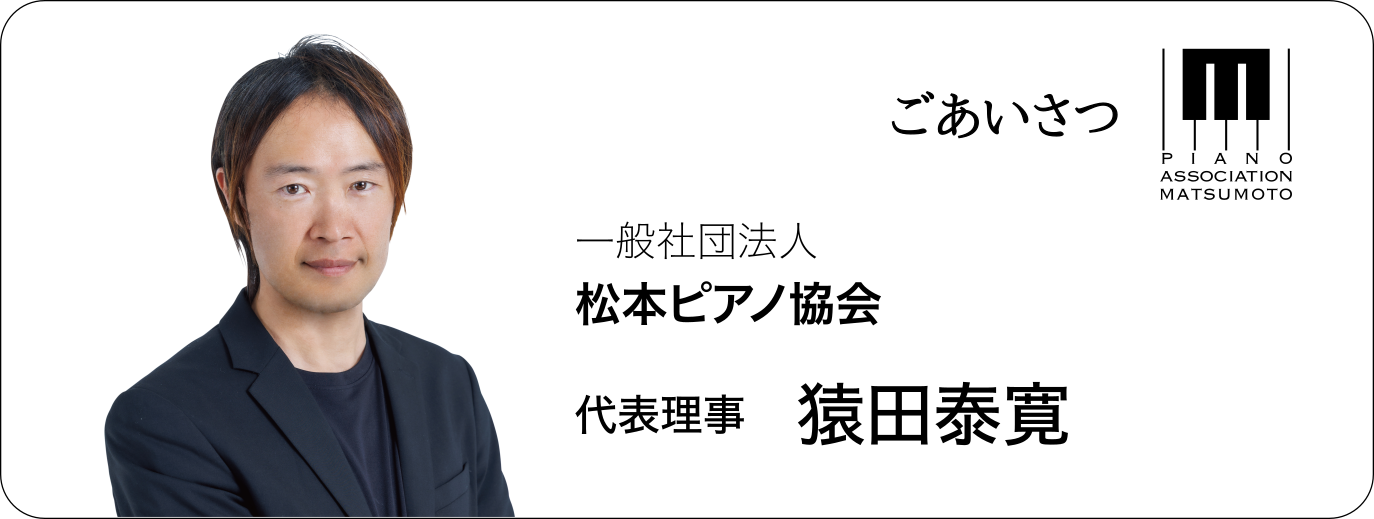 『松本ピアノ協会』は、各音楽系企業や、出身大学など 様々な垣根を越えたピアノ関係者・愛好家による幅広い ネットワーク作り&活動を目指し、 2011年に「楽都・松本」において立ち上がりました。 2025年10月より一般社団法人として新たに始動いたしました。